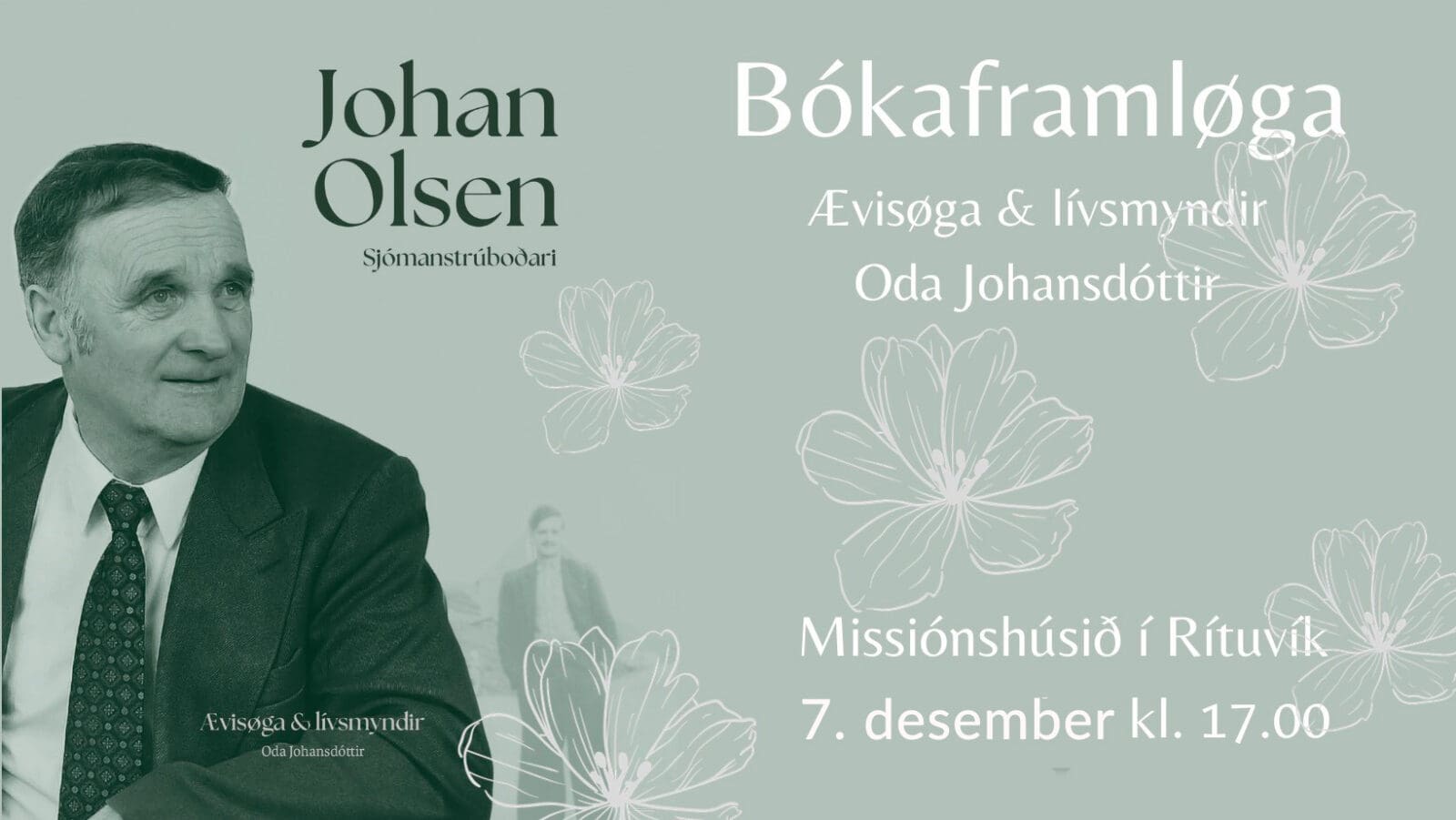 Nú kemur bókin um Sjómanstrúboðaran, Johan Olsen í Rituvík. Tað er dótturin Oda Johansdóttir, sum leggur framm í missiónshúsinum í Rituvík, hósdagin 7. desember 2023 kl. 17.00.