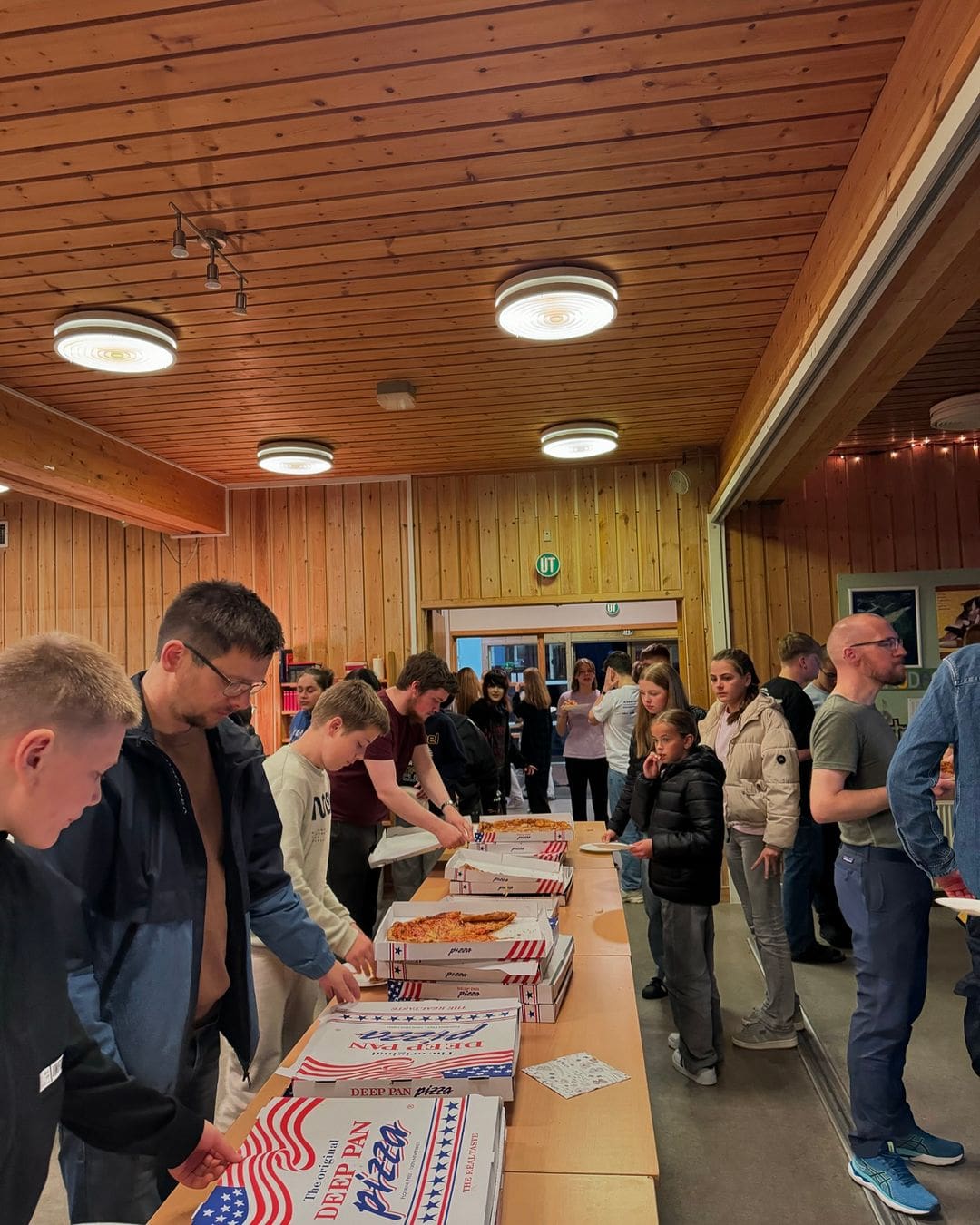 Fleiri enn 100 konfirmantar og ung til pizza í Meinigheitshúsinum í Havn