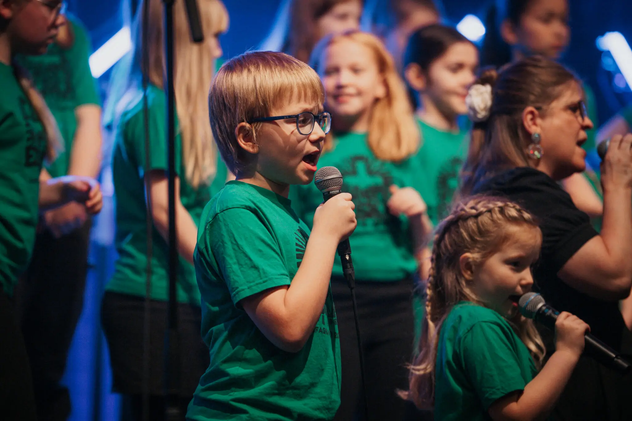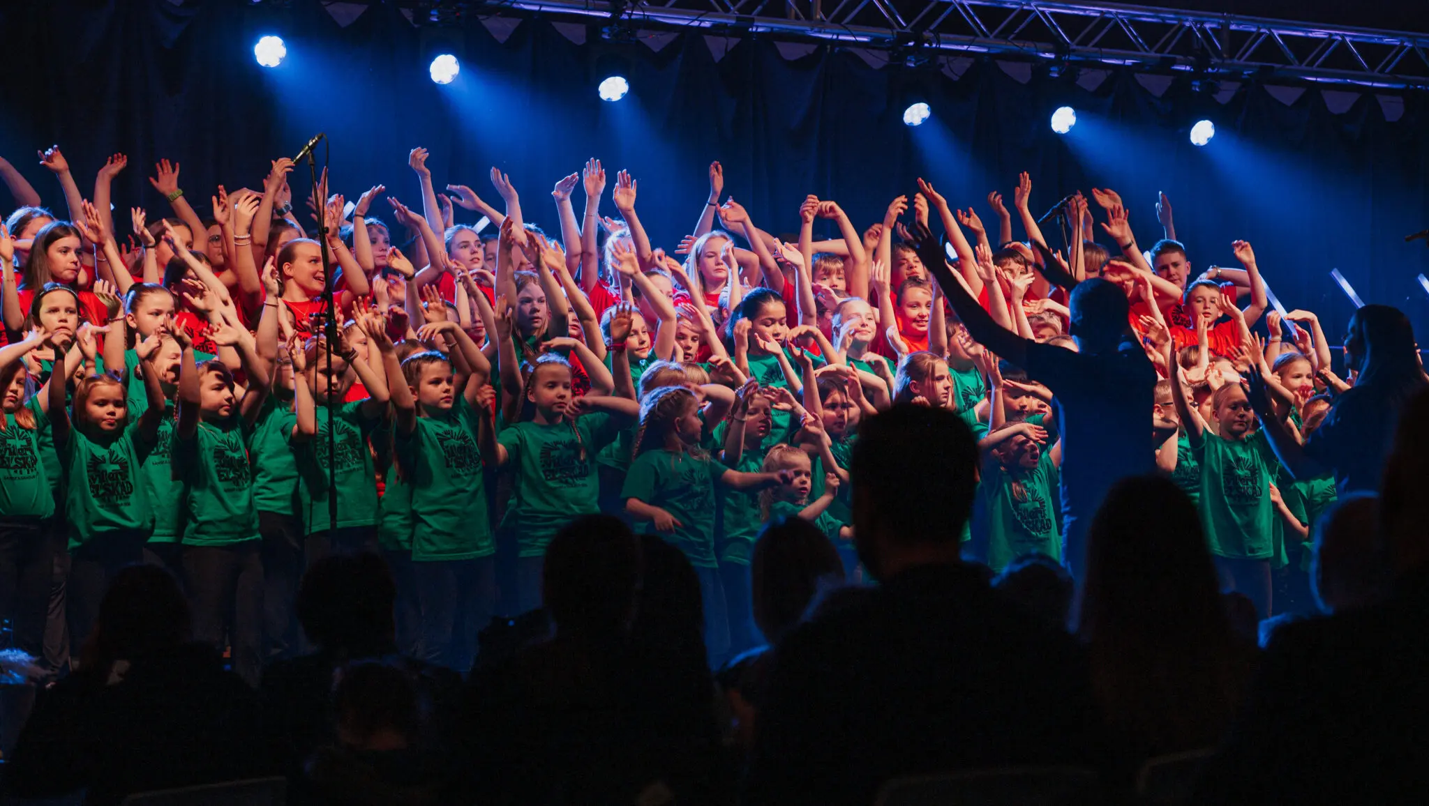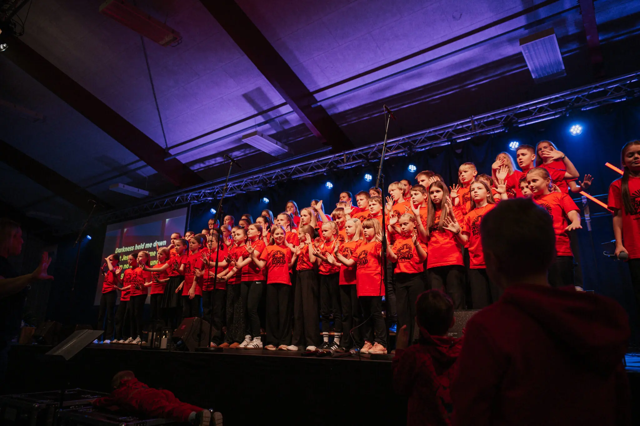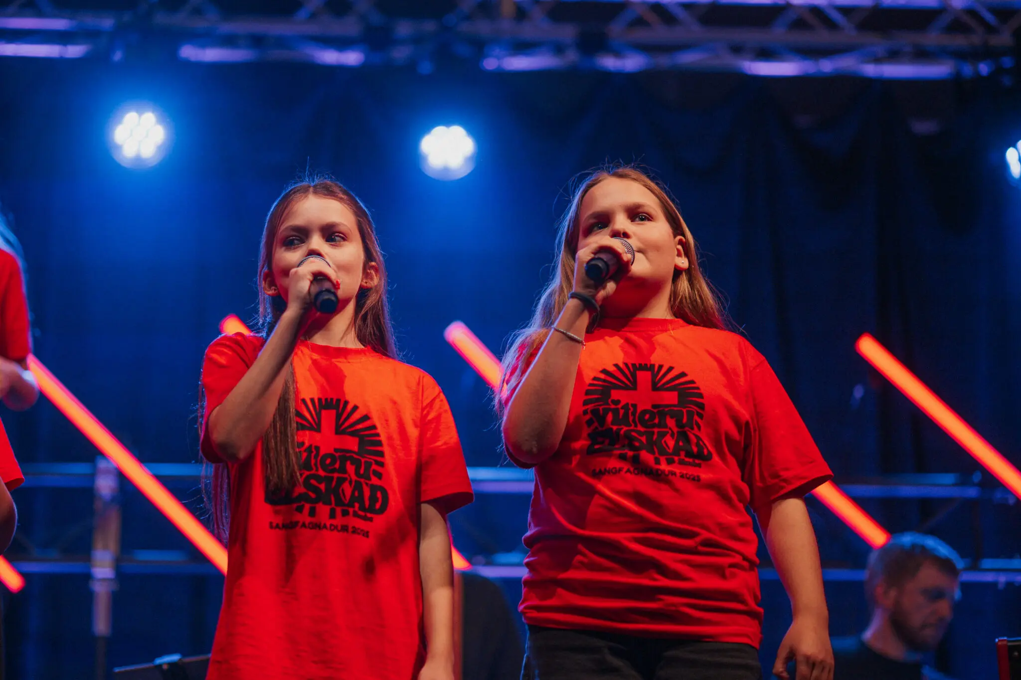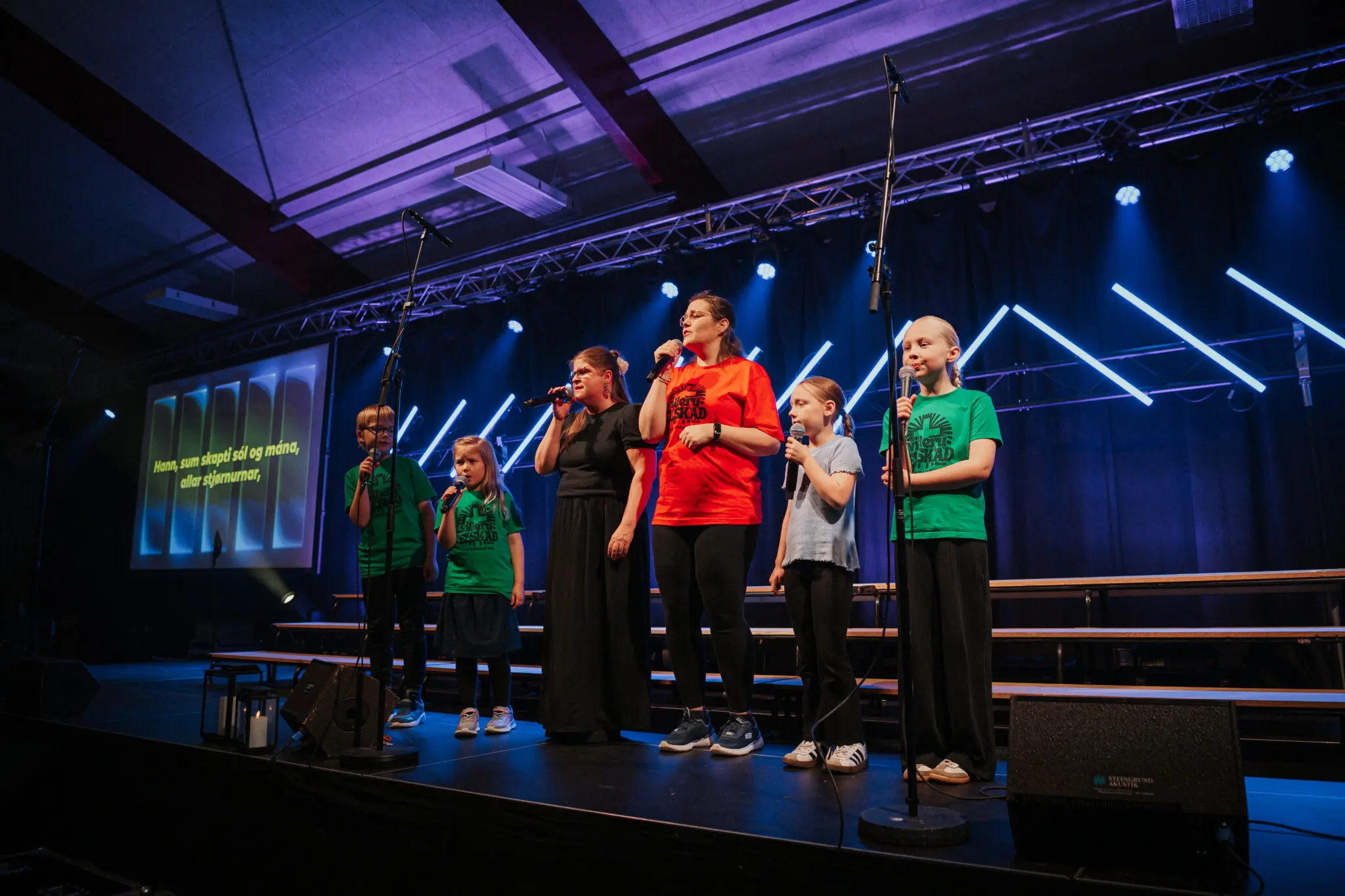 Nógv var á skránni, og serliga áhugavert var at hoyra stóra barnakórið frá Sangfagnaðinum í Nesvík í heystferiuni syngja fyri øðrum børnum, foreldrum, ommum, abbum og øðrum. Dugnaligir tónleikarar spældu undir, og fleiri børn sungu eisini solo.