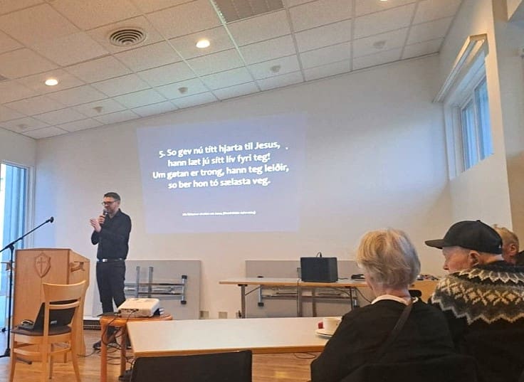 Orðini eigur Ólavur Jacobsen, trúboðari, sum farna vikuskifti var í Íslandi og hevði møti á Ørkini.