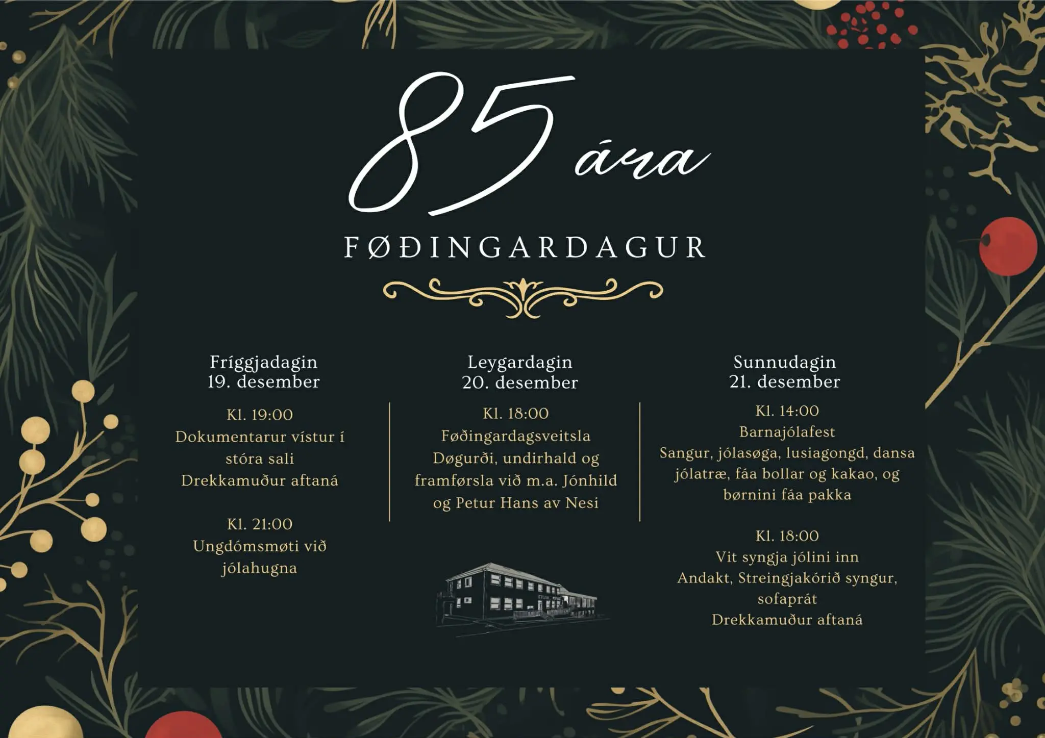 Sunnudagin verður jólafest fyri børn, og kl. 18 syngja vit jólini inn saman. Hetta verður ein hugnalig løta við framførslu frá streingjakórinum, andakt og sofapráti.