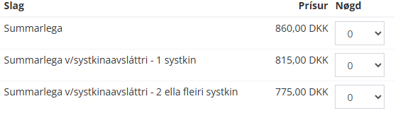 Hevur tú 3 børn, sum skulu á 3 ymiskar legur, skalt tú á hvørjari legu sær velja 1 í nøgd á “Summarlega v/systkinaavsláttri – 2 ella fleiri systkin”.