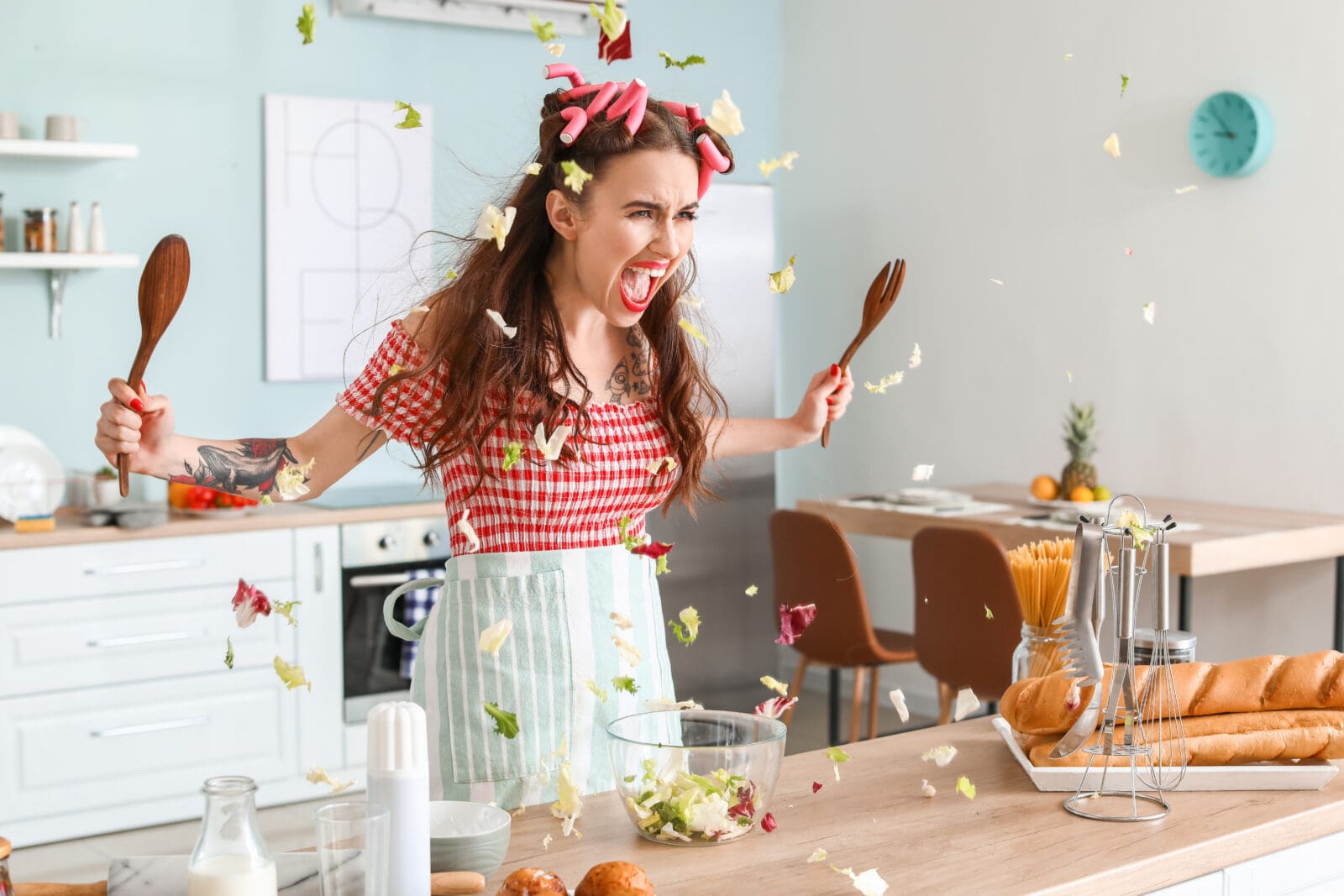 Marta var gestablíð og rokaðist í køkinum og royndi at gera sítt besta soleiðis at gestirnir fingu góðan mat.