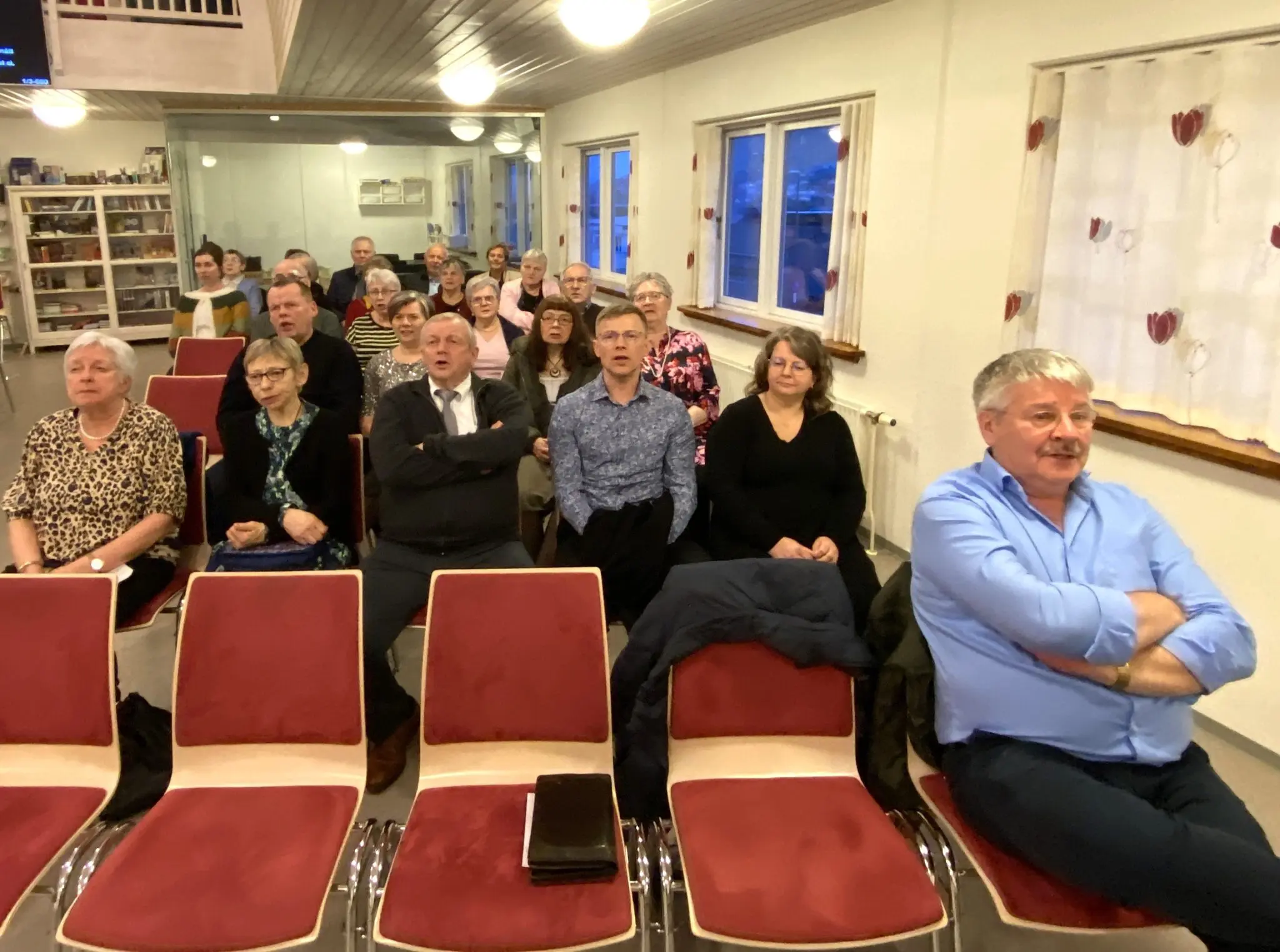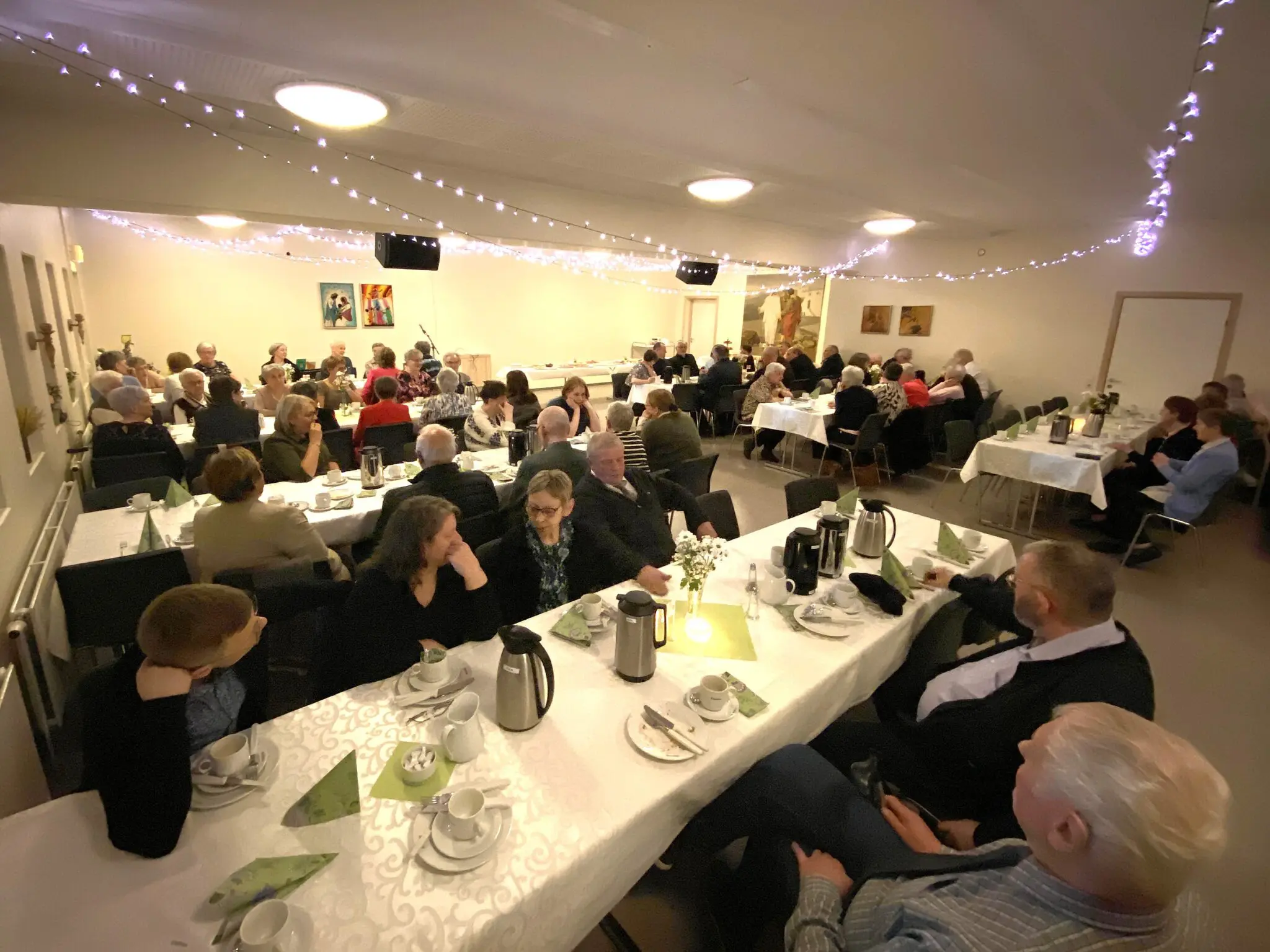 Síðani var bjóða til borðs í kjallaranum. Har var nógv og gott smyrjibreyð og køkur av ymiskum slagi. Høvi var eisini at heilsa SKA, og nøkur takkaðu fyri stóra og drúgva arbeiðið hesi mongu ár.